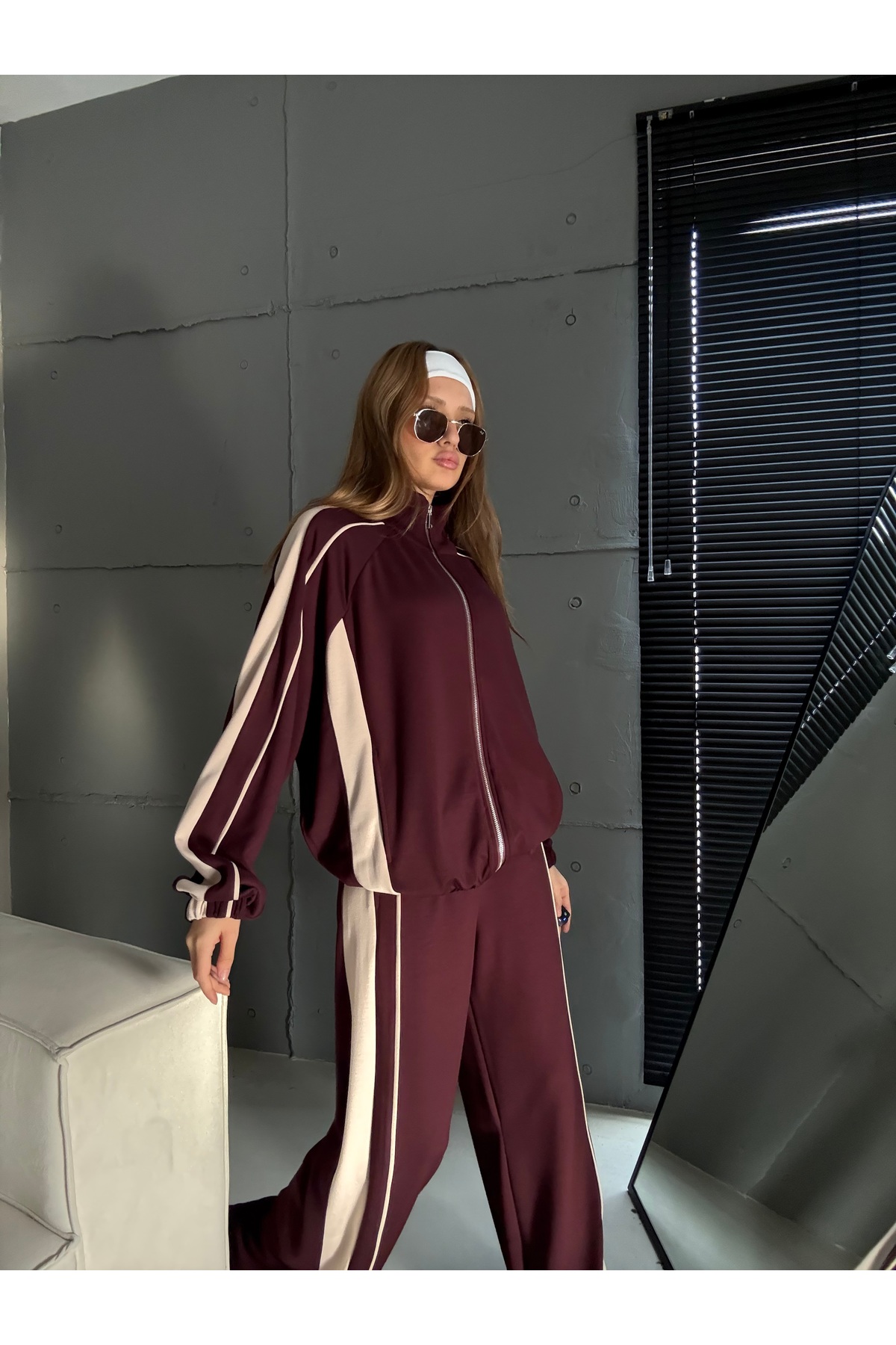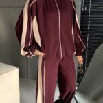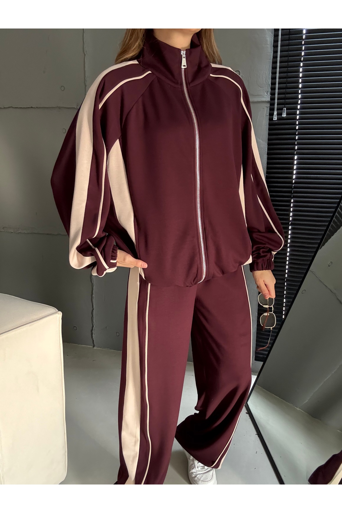 KADIN BORDO FERMUAR BLOK RENK DETAY MODAL KUMAŞ İKİLİ TAKIM